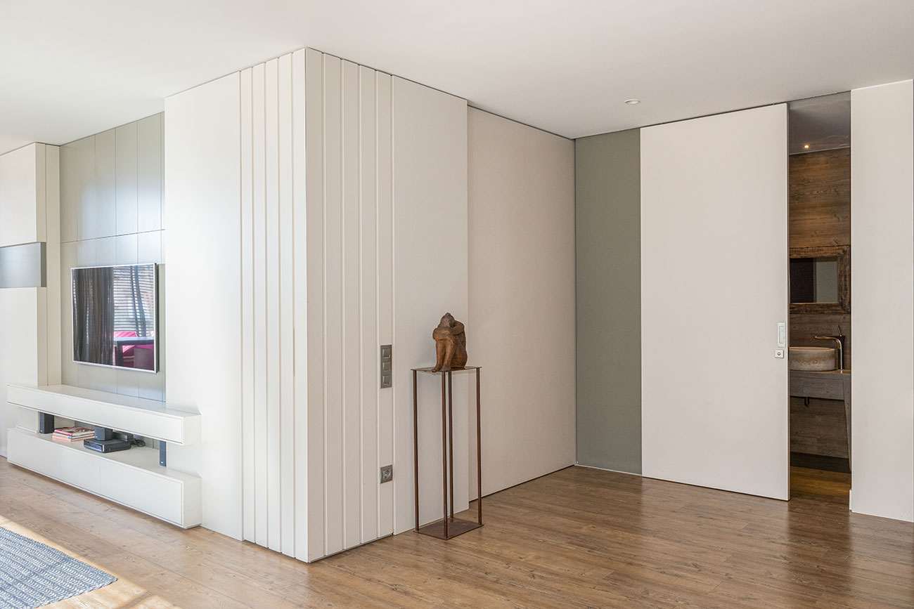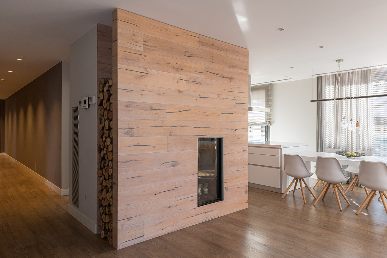 Distribución, proyecto de interiores y diseño de mobiliario. Materiales cálidos, maderas envejecidas y paneles y forrados lacados que distribuyen espacios diáfanos.